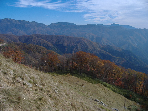 | 笹原の広がった奥秩父らしい山並み。前方に牛首。 |