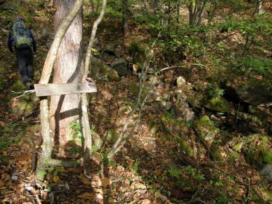 ホウズキ平。ホウズキが咲くのかどうか分かりませんが(^^ゞ この後も手書きの案内板が要所にあります。ピンクのテープもこんなに要らないのではないかと思われるほどいっぱい付けられていました。 |