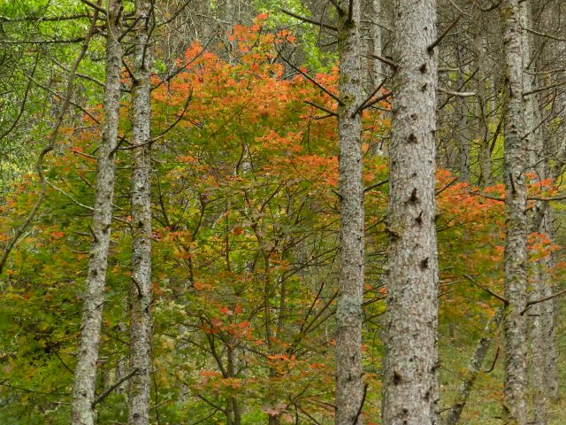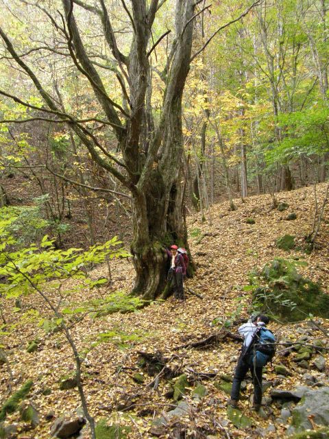 豊かな樹林帯。 彩が増す中に大木も。 何の木? |
