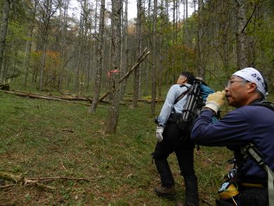 テープはついていますが登山道は自然にかえっているような気がします。 |