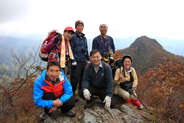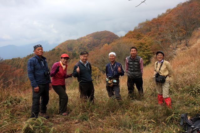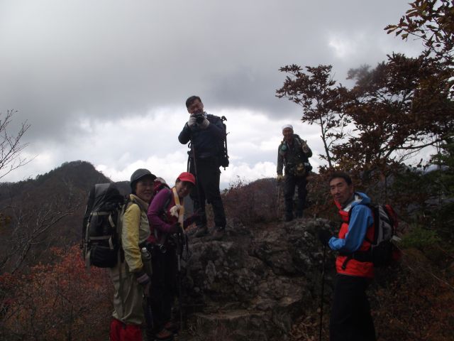 遠望はガスっていますが 近くの山は紅葉してきれいです。 八ヶ岳は雲の中。 (phot by Mr.yossi) |
