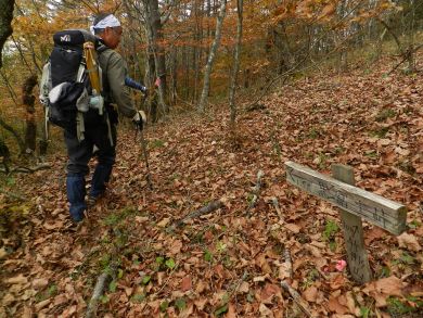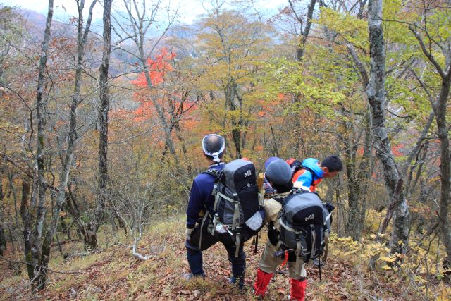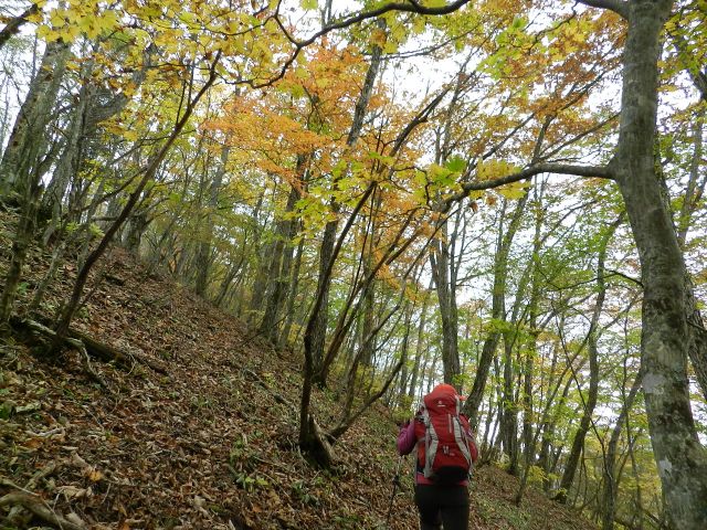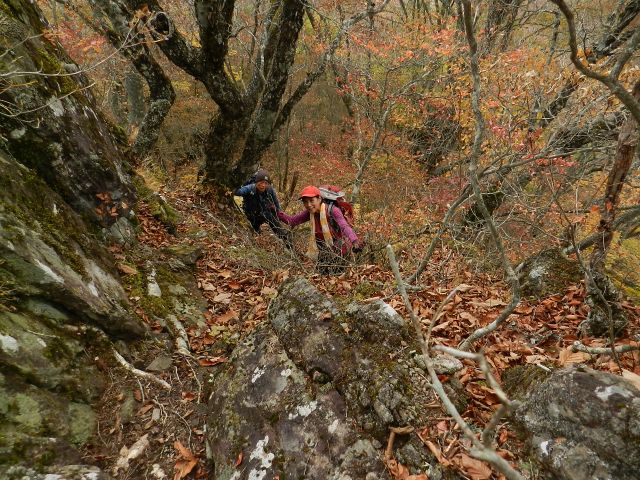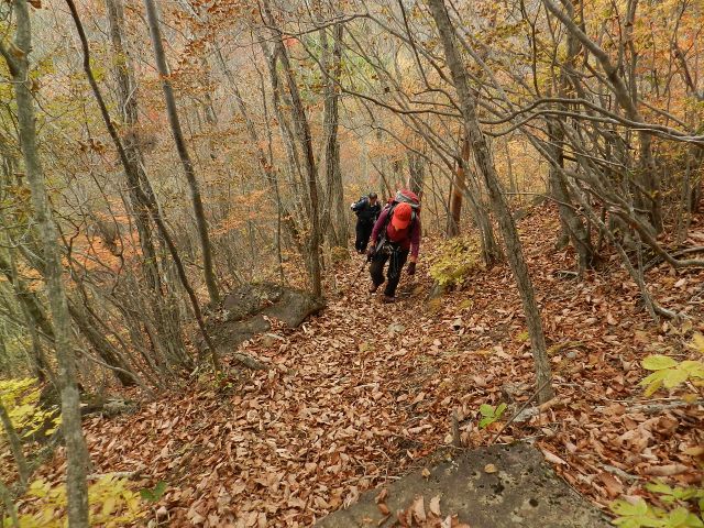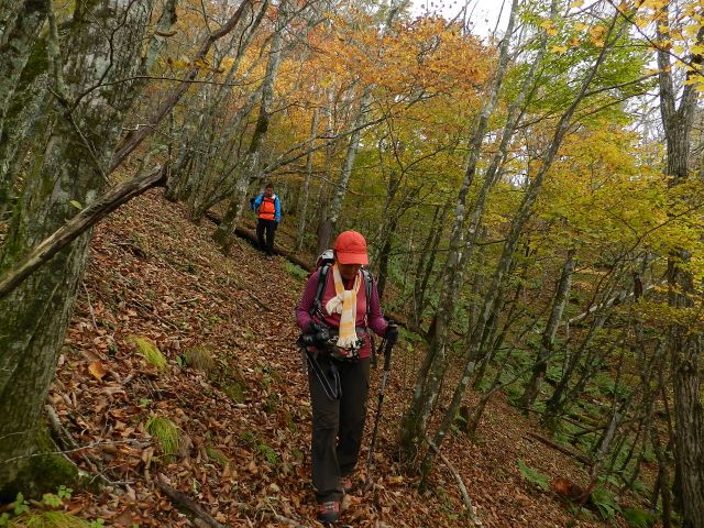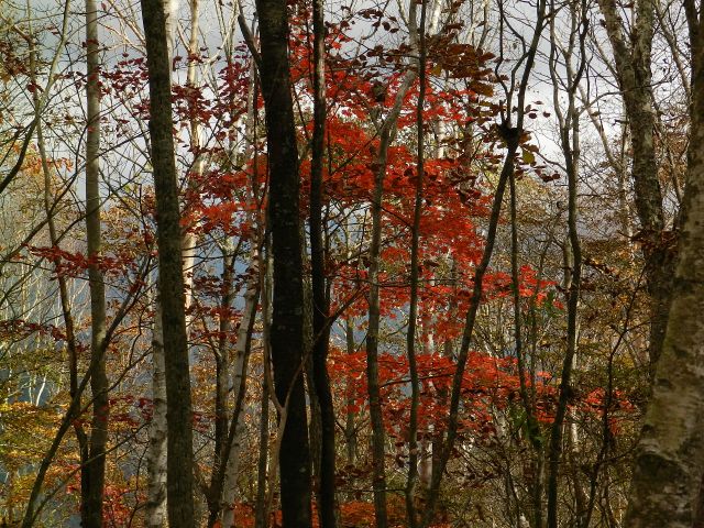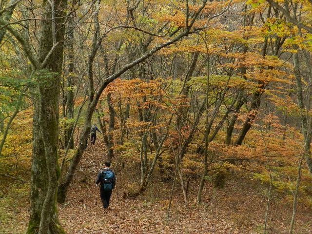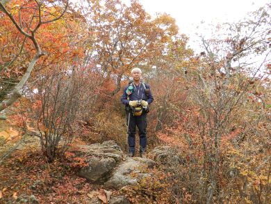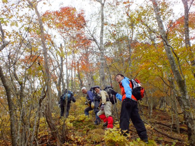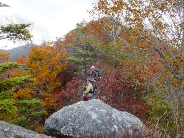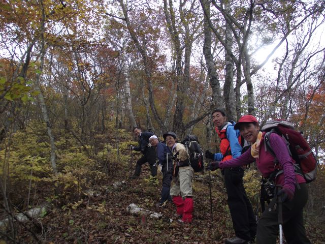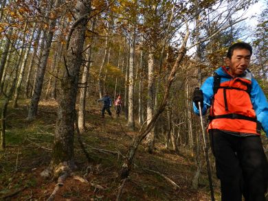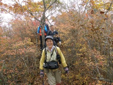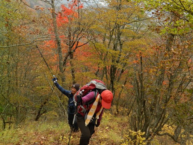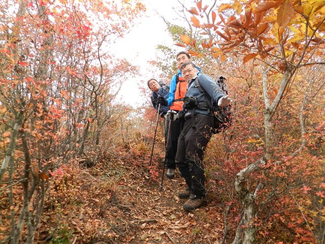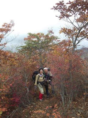 | 山梨も紅葉が見頃という声がかかり、前回のお約束通り久しぶりにヨッシー隊、みちほさんご夫妻と出かけてきました。本命は翌日予定の十二ケ岳と節刀ヶ岳でしたが前日も休みがとれるということで思いがけなく黒富士のマイナールートを案内していただきました。途中誰一人出会うことなく静かなルート、紅葉もきれいでした。天気がイマイチで富士山が見えなかったのと翌日雨で中止になったのが心残り。 | |