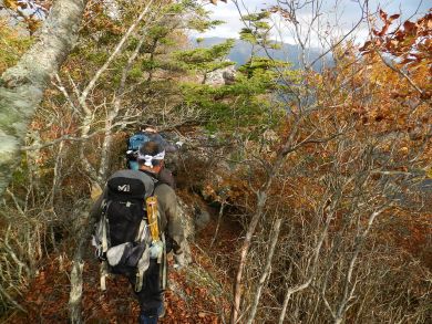 黒富士峠から撥岩へ。その間はテープがついていなかったと思います。 こちらはマイナールートなので、行かれる場合は道迷いや足元に十分ご注意ください。 |