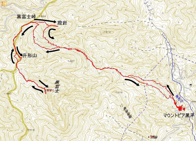 | 山梨: 升形山〜黒富士 (ますがたやま1650m−くろふじ1635m クリック地図 ) |