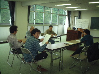 事故は難所に限らず、低山ハイクでも起こりうる。参加者で事故に遭遇した人は少なかったが、それはただ運が良かっただけという今井さんの言葉と体験談に、一同緊張。救助訓練は重要という認識をもって、真剣に耳を傾けた。 そして、二グループに分かれて遭難事故から救出までのシュミレーション(寸劇というか、学芸会というか・・)。それぞれに計画書を書くところから始め、実際に練習してみる。先ず丹沢の日帰りで足の骨折事故