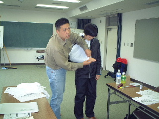 | 雨のため室内での救助トレとなったが充実した内容 (場所:本厚木・神奈川県立清川青年の家にて) | |