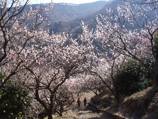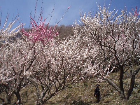 山の裾野に広がる梅林。 |