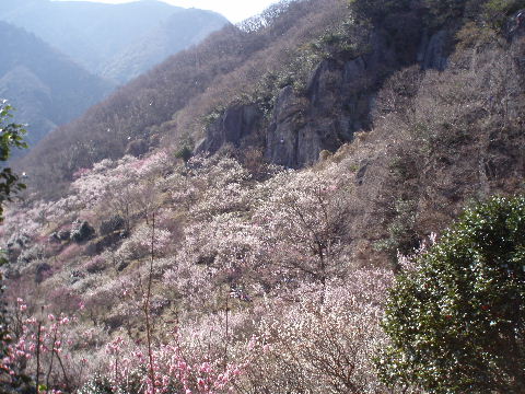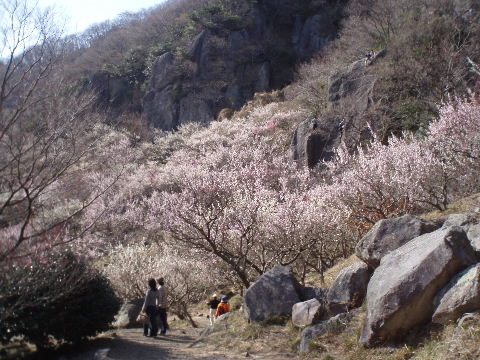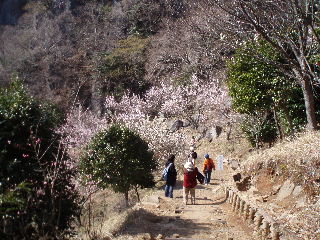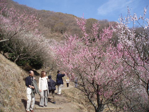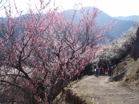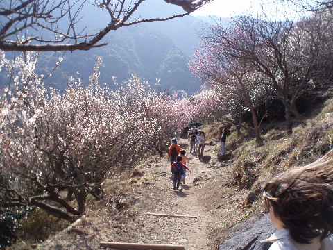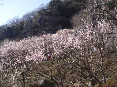 あっという間に梅林の最上部です。クライミングを楽しんでいる人たちの声が聞こえてきます。