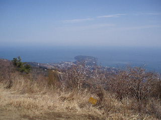 山頂からは真鶴半島が見えます。シートを持って来ていましたが、しばし立ったまま眺めていました。 |