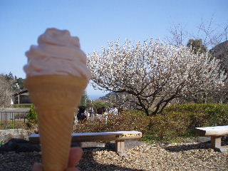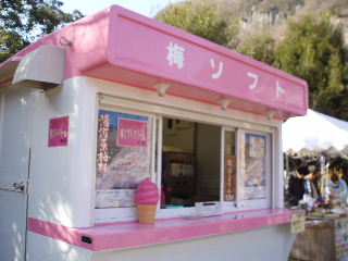 いつもは寒かったりして眺めていただけの梅ソフト屋さん。 |