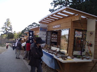 梅ソフトを戴いた後、お土産屋さんを眺めながら歩きます。早くも店じまいの準備をしているところもあり、結局何も買わずに通り過ぎてしまいました。 |