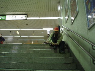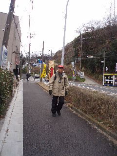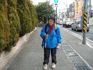 | 靴に入った石?を出しているトシちゃん。 登戸駅まで歩き、電車にしましたが、乗り換えせずに再び30分ほどの距離を歩くことにします。 途中で買い物したので時間がかかりましたが帰宅は午後5時ごろでした。 |