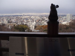 写真では見にくいですが、 奥中央の一番大きいビルの右側に見えたのは 浅間山かなぁ・・・とトシちゃん。 |