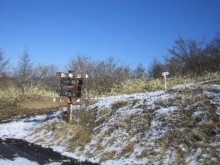 | 野辺山スキー場で娘をおろしてから私たちは平沢峠へ。駐車場はすっかり整備され、昨年2月には無かった売店まで建っていた。 今回、駐車場に雪は無い。正面の八ヶ岳がくっきりときれいだ。 用意していると車が一台入ってきた。若いカップルで先に登って行った。 |