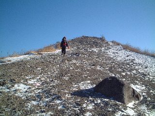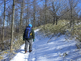 | 山頂を下り始める。雪はこの程度。 | |