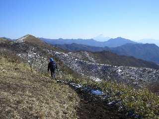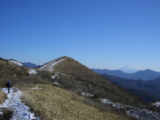 | 富士山を眺めながら前方の飯盛山に向かう。 | |