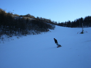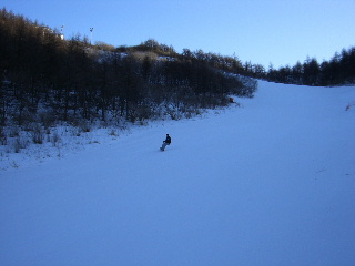 | 貸しきり状態のゲレンデ。 数枚写して娘もスノボー終了。 スキー場の駐車場へと戻った。 |