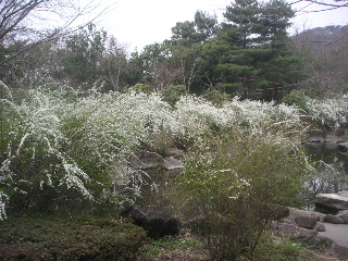 | 入ってまず、満開のユキヤナギに目を奪われました。帰りにまたゆっくり見ることにして、そのまま先にすすみます。 | |