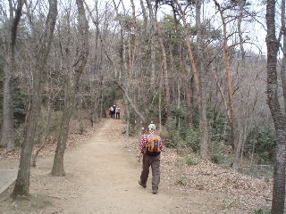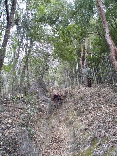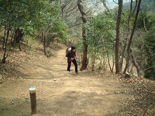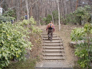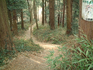 | 整備された公園とはいえ、このような山道っぽい所があって嬉しい。しかもあまり人の通らない静かなコースです。周囲は竹林、時期には筍が生るのでしょうか。 | |