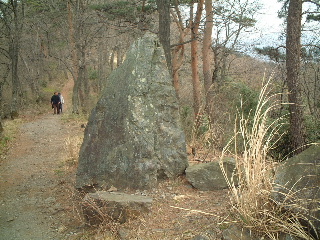 | 途中から、往きで通らなかった犬石のある方へ。そのまま山頂広場に向かうことにします。 ↓ 下2枚・・・犬石に見えますか? |