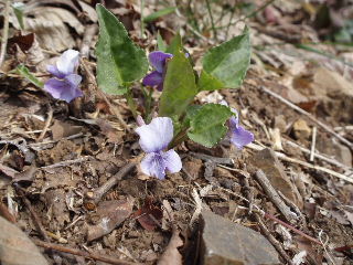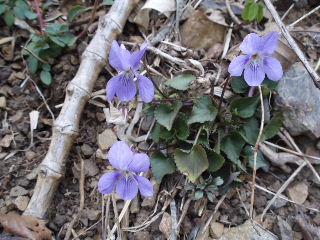 | 春がいっぱい訪れていました。 タチツボスミレもいっぱい。名前が詳しく判別できませんがかなりたくさんの種類のスミレが咲いています。これも帰りにゆっくり見ることにします。 |
