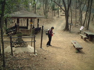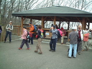 | 山頂広場では大勢の人がいました。この東屋の下にはトイレがあります。 | |