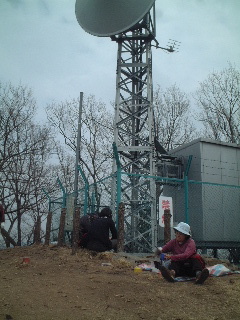 【←↑ 山頂にはアンテナの鉄塔が建っています。此処が三毳山の最高地点ですので狭いながらも大勢の人が休憩していました。 せっかくですので私たちも一休みしてから同ルートを戻ることにします。】 |