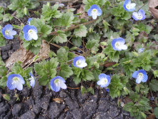 | 山頂広場から、往きとは違うルートで再び中岳へむかいます。人が多かったので写真だけ写して通過し、ハングライダーのフライトコースも通過します。 | 【↑ オオイヌノフグリ】 |