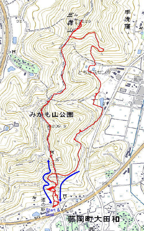 | 振り返って三毳山 青竜ヶ岳は見えませんが、 三毳神社が上の方に見えます。 ![]() |