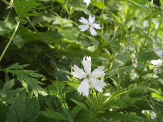 | それでもシシウド、マルバダケブキ、シモツケソウ、グンナイフウロ、センジュガンピ、タカネナデシコ、ウメバチソウ、クルマユリ、ニリンソウ、イブキトラノオ、ヨツバシオガマなど所狭しと咲いていました。ヤナギラン、ヤマリンドウ、トリカブト・・・山はもう秋の用意を始めているようです。 | |