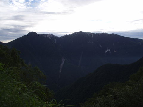 8/10(四日目)晴のち雨:農鳥小屋5:37〜西農鳥岳山頂7:00〜農鳥岳山頂8:14-37〜大門沢下降点9:25-36〜広河内岳山頂10:19-48〜大籠岳山頂13:08〜白河内岳山頂14:30〜ビバーク15:10(テント泊) 8/11(五日目)明け方まで雨。晴後曇り&小雨:ビバークテント場5:54〜笹山北峰山頂7:38-8:00〜笹山山頂(南峰)8:10-12〜大休憩9:00-26〜白剥山山頂11:06-53〜奈良田越12:30〜伝付峠16:21〜テント場16:35(テント泊) 8/12(六日目)曇りのち雨のち晴:テント場4:50〜東京電力管理小屋6:38-41〜大滝7:50〜建設中ダム8:25〜新倉湧水10:00-20〜ヘルシー美里(バス停)11:00・・・ヘルシー美里にて入浴。バス停13:59発身延駅行きに乗車。 (所要時間・・休憩時間含む)←省略 |