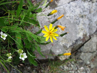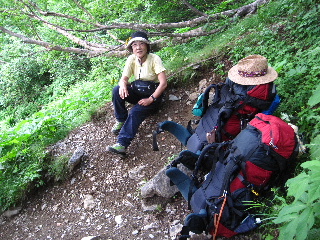| 50分から1時間で一本休憩。キタダケソウを見に来たのはもう3年前。時の立つのは早いですが、ここで休憩したねとか懐かしい話をしながらのんびりと。 | |