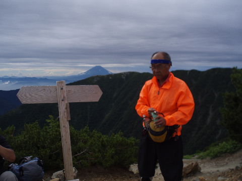 | H22年8月7日-12日(土-木) 天気;下記コースに記入 Member.2人(トシちゃん&sanae) 小太郎山山頂より日本一の富士山(写真の左側)と、二位の北岳(写真)を仰ぎ見る |