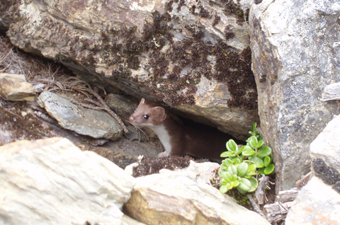 | 先行のご夫婦と話していると 突然奥さんが「あっ、オコジョ!」と。 ![]() |
