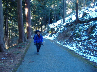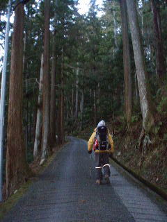 | 杉に囲まれた参道はずっと舗装され・・・ | |