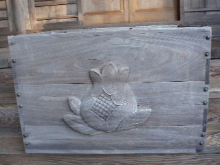 | チャリンと賽銭箱へ。さすが鬼子母神堂、ざくろの木彫り。いろいろな願い事が書かれている絵馬もざくろの絵でした。 | |