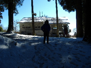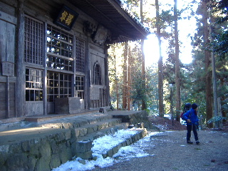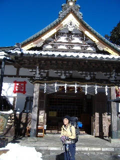 | 日蓮が父母や師匠を偲んで建立したと言われる奥之院思親閣。 こちらでもお参り・・・・・・って、今日はいったい何回したことやら(^^ゞ でもきれいな青空の下で気持ちの良いお参り日和でした(^^♪ 北西にある山頂(展望台)へは左側から行きますが、こちらも歩くところだけ丁寧に除雪されていました。 |