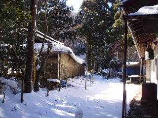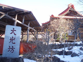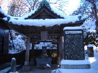 | 日蓮聖人御自作の大黒尊天だそうです。人が通らない場所は雪がそのまま残っていますが・・・ | |