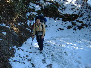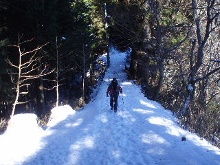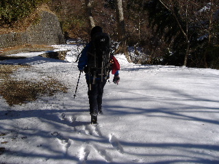 | 日当たりは徐々に雪が融けていました。早朝や曇りの寒い日は凍結注意ですが、この時はサクサクでアイゼンは必要ありませんでした。 | |