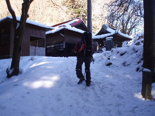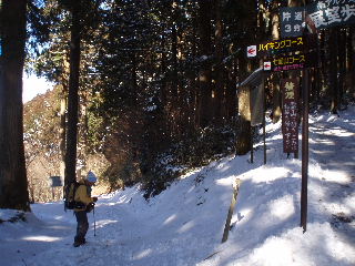 | 三門に近い上の方の駐車場は開く時間が遅いので、このまま下の駐車場に車を置いたまま出発。除雪されていますが、まだ少し雪が残っています。なので私も最初からストックを出していきます。降雪は一昨日。前日だったら大変だったかもしれません。 背後のトイレは夜中灯りが付いていてきれいでした。駐車料金は一日千円。受付が閉まっているので下山してから支払うことにします。 |