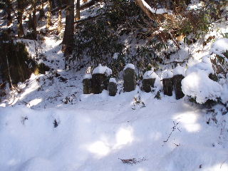| 石仏も雪の帽子を被って埋もれています。 | |