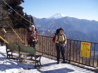 | H21年1月11日(日) 天気;晴れ Member:2名(トシちゃん、sanae) 【コ ー ス】(〜は歩、休憩含む) 身延山町営駐車場7:07〜三門7:28〜久遠時7:41-58〜身延山山頂10:30-40-〜(ロープウェイ乗り場前で富士山眺望)〜西コースより三門へ〜三門13:13-?(休憩)〜駐車場13:42【休憩含む所要時間約6時間35分】 |