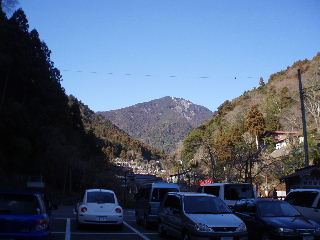 | 駐車場から見える身延山。朝日の当たっている山頂の建物が見えます。 | |