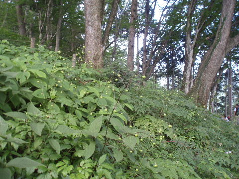 | 御岳神社に向かう道にもレンゲショウマの第二群生地があるというので寄ってみることにします。山の上とはいえ、宿坊がたくさんありますし、御岳山信仰の人も多いせいか、このようないい道が続きます。 | ||||