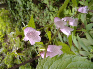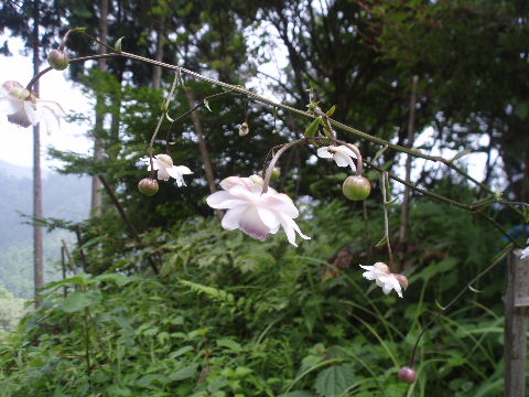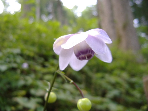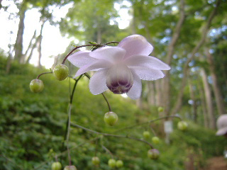 レンゲショウマ群生地に行くと やはり蕾、蕾、蕾・・・ 何しろ5万株といいます。 そのうちの200株くらいは咲いているというのですが これだけの群生地となると200株がまばらです^_^; でも優しい表情のレンゲショウマが 出迎えてくれました。 |