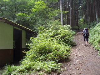 | 水場の近くには休憩舎があります。そちらにも休んでいる人がいたので中には入らず近くで少し休んでから出発。 夏の奥多摩も結構暑いのですが、この日はとても爽やかでした。1050mほどで気温23度。 |