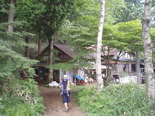 | 大岳山荘。爽やかな気候でも歩けば暑い!ここで少し休憩。 | ||||