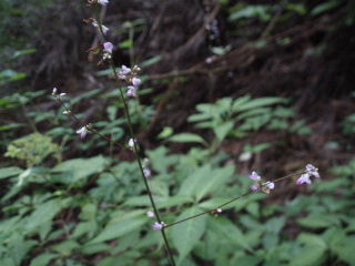 | 大岳山分岐まで来ると、トシちゃんはもう御岳神社へ行く気がなくなりました。「行って来いよ、待ってるから・・・」・・・って、出た!トシちゃん語録! せっかくですから第二群生地のレンゲショウマを愛でるsanaeに対し、トシちゃんが写していたのはツユクサ。この花好きですが、いつもネズミに見えてしまうのは気のせい? |
