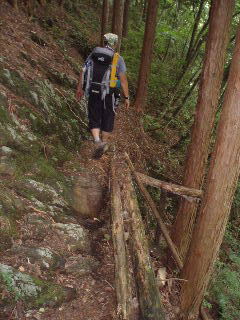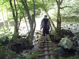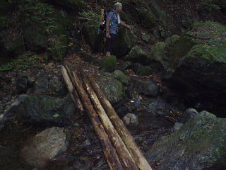 | かなり荒れた道でしたが、沢にはこうして簡単に丸木がかけられています。 | ||||