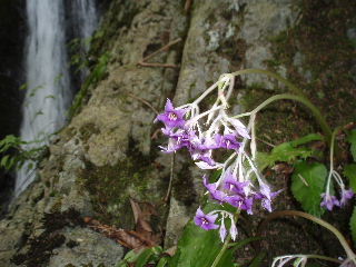 | H20年8月3日(日) 天気;晴 Member.2人(トシちゃん、sanae) 【コ ー ス】(〜は歩、休憩時間含む) 御嶽駅7:29着=(バス7:50発。10分)=滝本ケーブル下=(ケーブル)=みたけさん〜レンゲショウマ自生地(散策、写真、朝食)〜御岳神社〜大岳山12:25-13:13〜分岐13:20〜(海沢探勝路)〜白丸駅17:15頃(17:18発) |